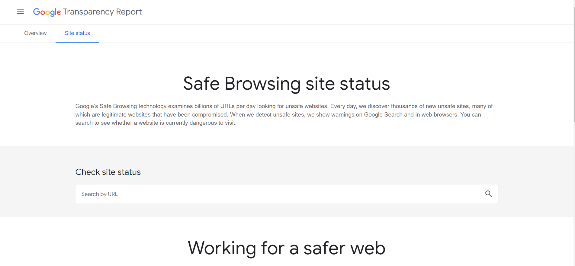 În ceea ce privește securitatea site-ului web, scanerul Google funcționează destul de bine. Acesta vă permite să verificați rapid dacă URL-ul introdus este marcat ca "sigur de vizitat" de către căutarea Google. Acest instrument monitorizează miliarde de link-uri și, dacă sunt suspicioase, le marchează imediat ca "periculoase". Conform datelor furnizate de Google, sunt detectate zilnic o mie de site-uri web care prezintă o amenințare pentru utilizatori.