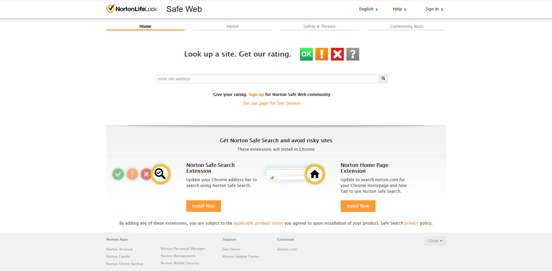 Web Site-uri web sigure? Un scaner precum Norton Safe Web este perfect pentru detectarea celor mai noi tipuri de amenințări. Folosește tehnologia avansată de detectare a virușilor de la Symantec. După scanare, ne va notifica despre riscul potențial de scurgere de date și alte incompatibilități suspecte. Ceea ce face acest program să se evidențieze sunt adnotările suplimentare care ajută utilizatorul să investigheze amenințarea mai în profunzime și să o localizeze.